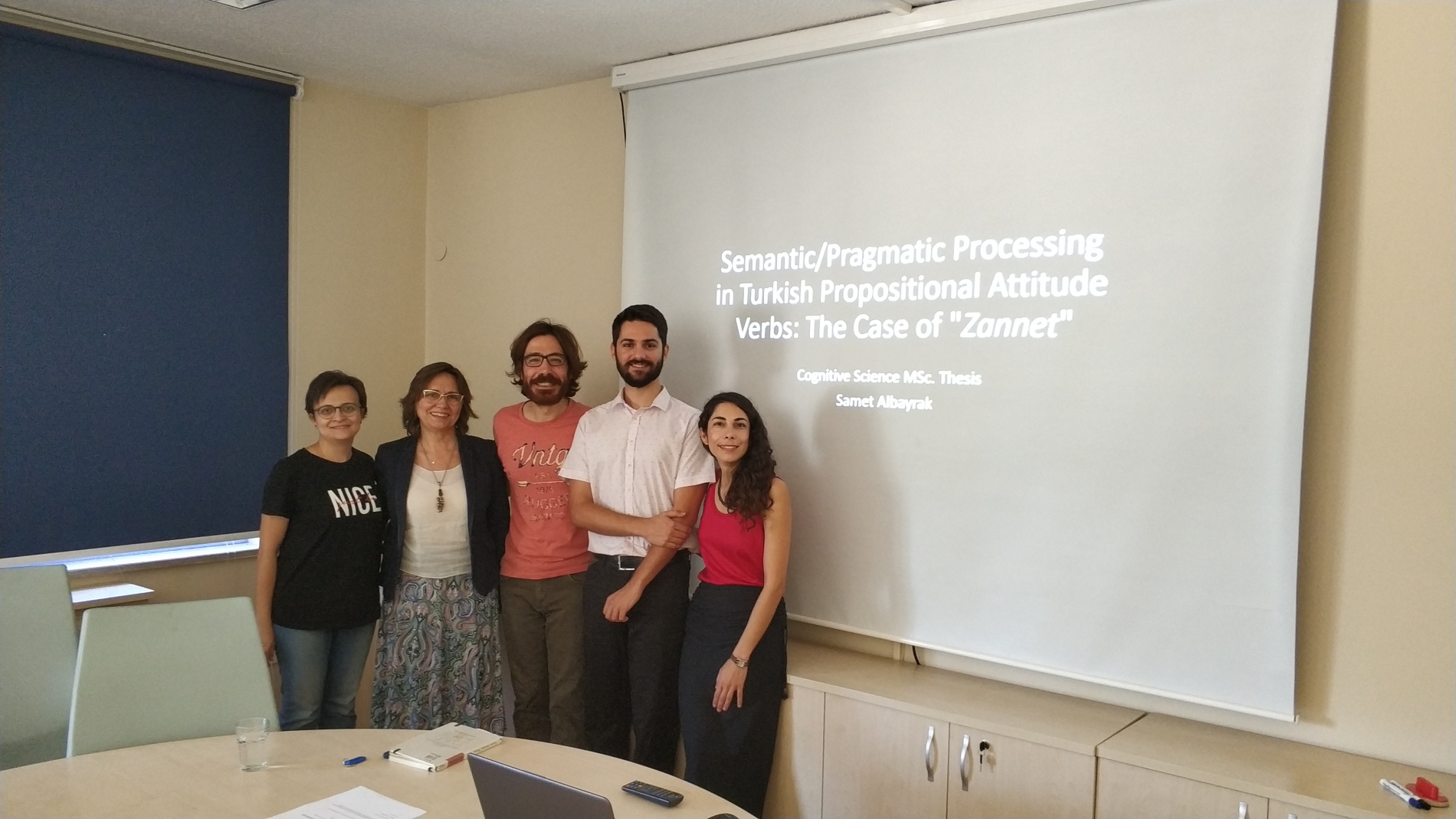 Samet Albayrak successfully defended his master dissertation titled "Semantic/Pragmatic Processing in Turkish Propositional Attitude Verbs: The Case of "Zannet"" and received his M.S. degree. Congratulations!